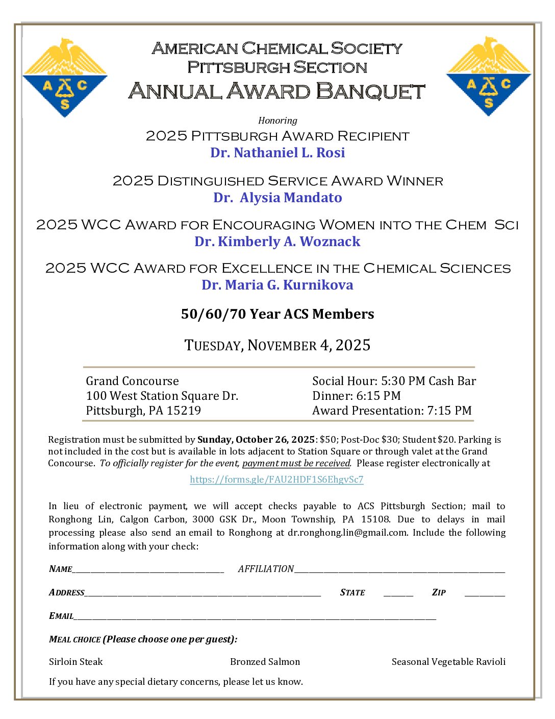Join us for the 2025 for the Fall 2025 ACS Annual Award Banquet featuring all of the amazing award winners! Click here for registration.