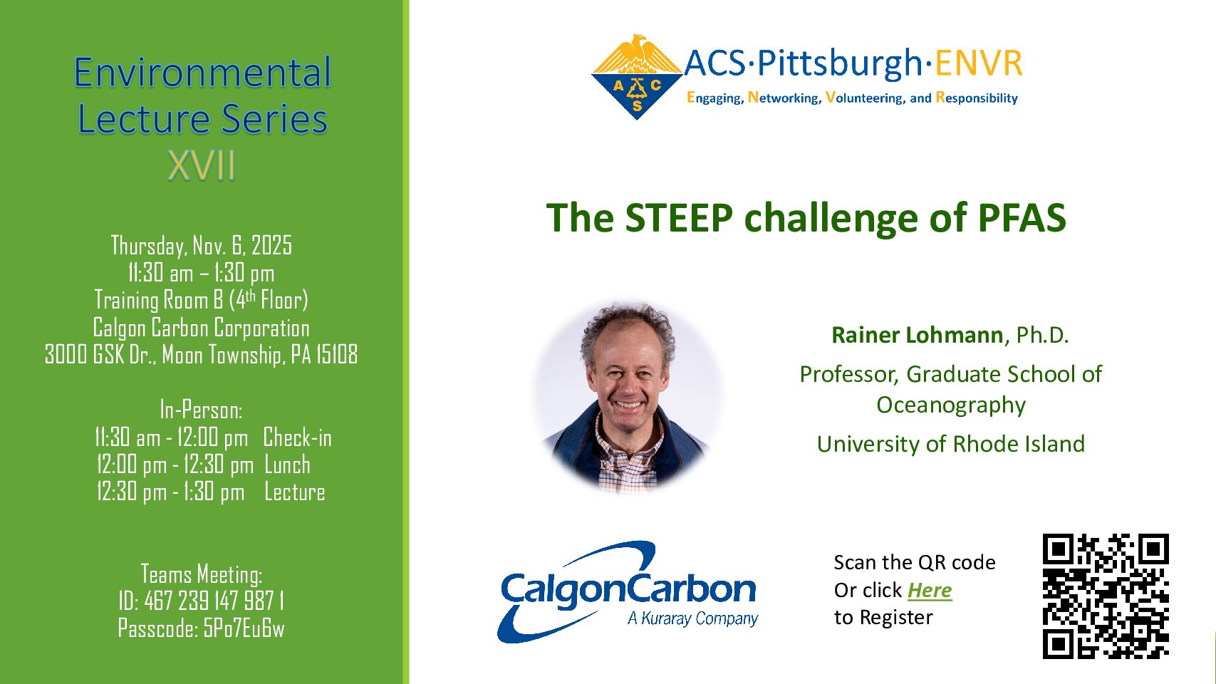 Check out the upcoming environmental lecture given by Dr. Rainer Lohmann on the “The STEEP challenge of PFAS”. Click Here to register and keep reading for more information!